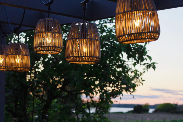 Pendellampor eller plafondlampor över matbord eller loungehörnor blir en naturlig mittpunkt och kan höja stilkänslan på uteplatsen.