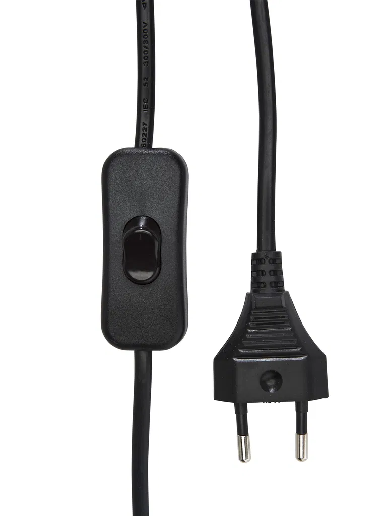 Kommer med 1,6m svart sladd med strömbrytare ca 35cm från lampan och platt EU-kontakt. E27-sockel max 25W.