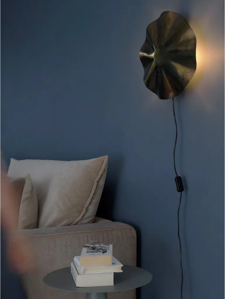 Lägg till skulptural belysning på väggen med denna eleganta metallvägglampa med veckad skärm och en rik bränd kopparfinish.