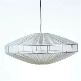 Är handgjord och och tillverkad i ett vackert semitransparent tyg där ljuset silar vackert mellan vävens trådar och sprider en fantastisk allmänbelysning över rummet.