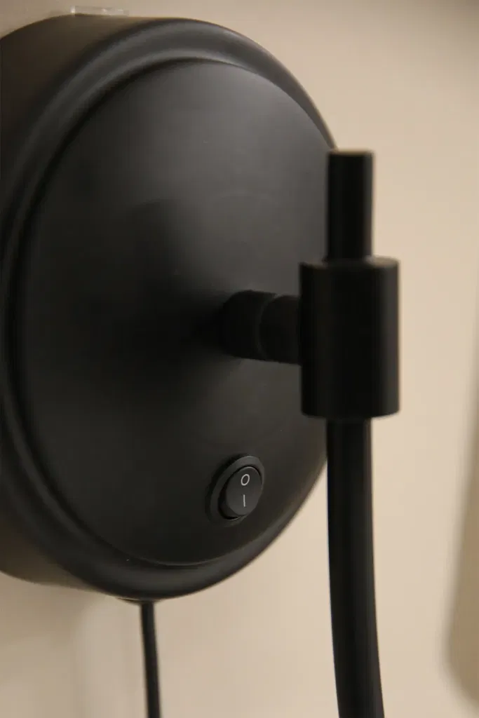 Kan monteras direkt i vägg med kopplingsbox i väggplattan alternativt med bygel och används med 2m svart sladd med väggkontakt. Brytare på väggplatta.