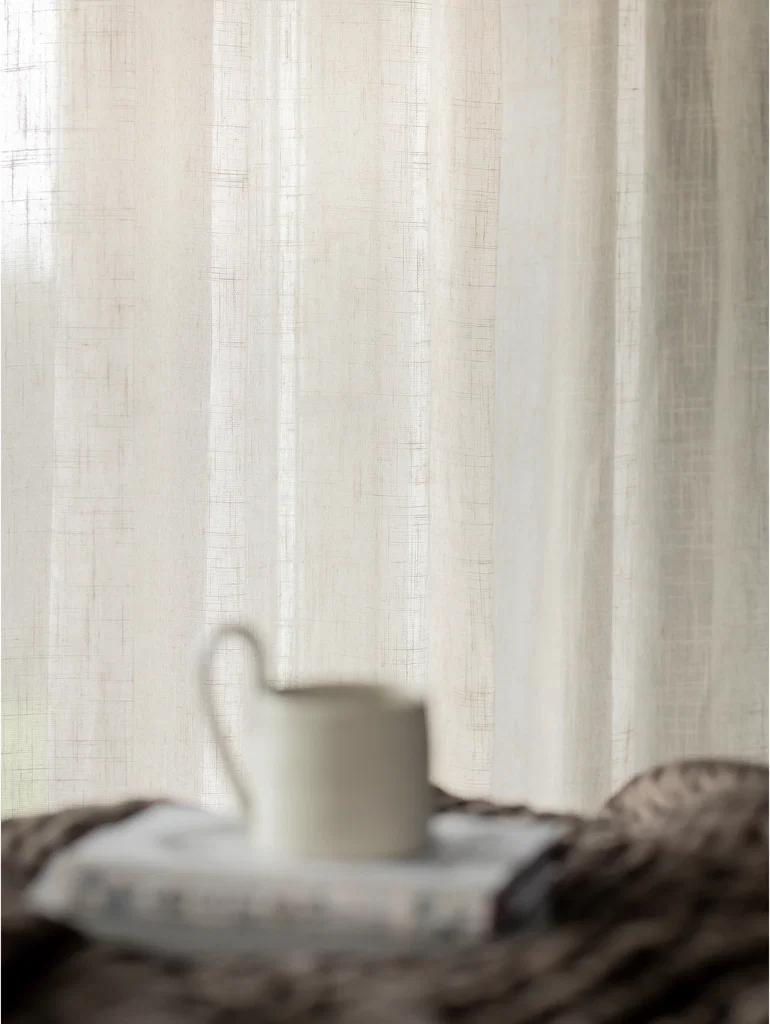Skira gardiner i med linnefibrer ger en vacker struktur och naturlig färg. Ana släpper in mycket ljus och blir en vacker detalj som ramar in fönsterna i vardagsrum eller matsal.