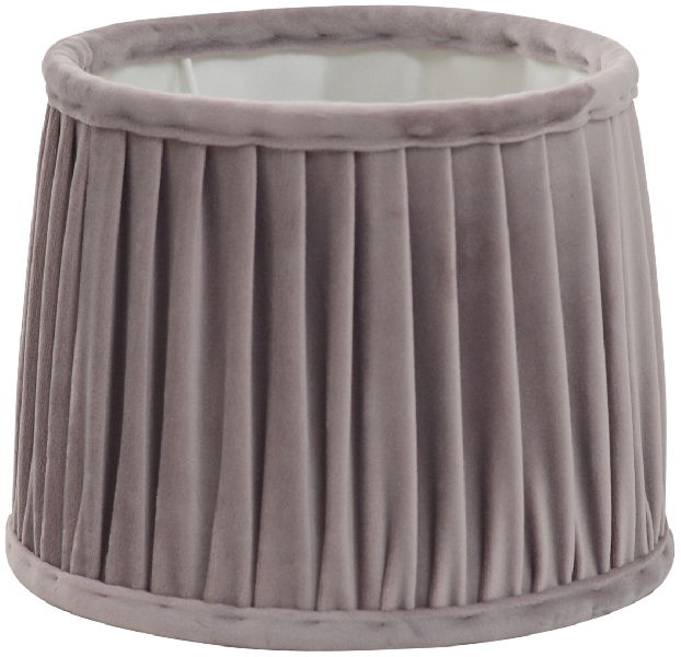 Anastacia är tillverkad i en sydd utsida av dimrosa, veckad sammet med en insida av ett offwhite tyg. En lampskärm som ger ett väldigt lyxigt och elegant intryck.