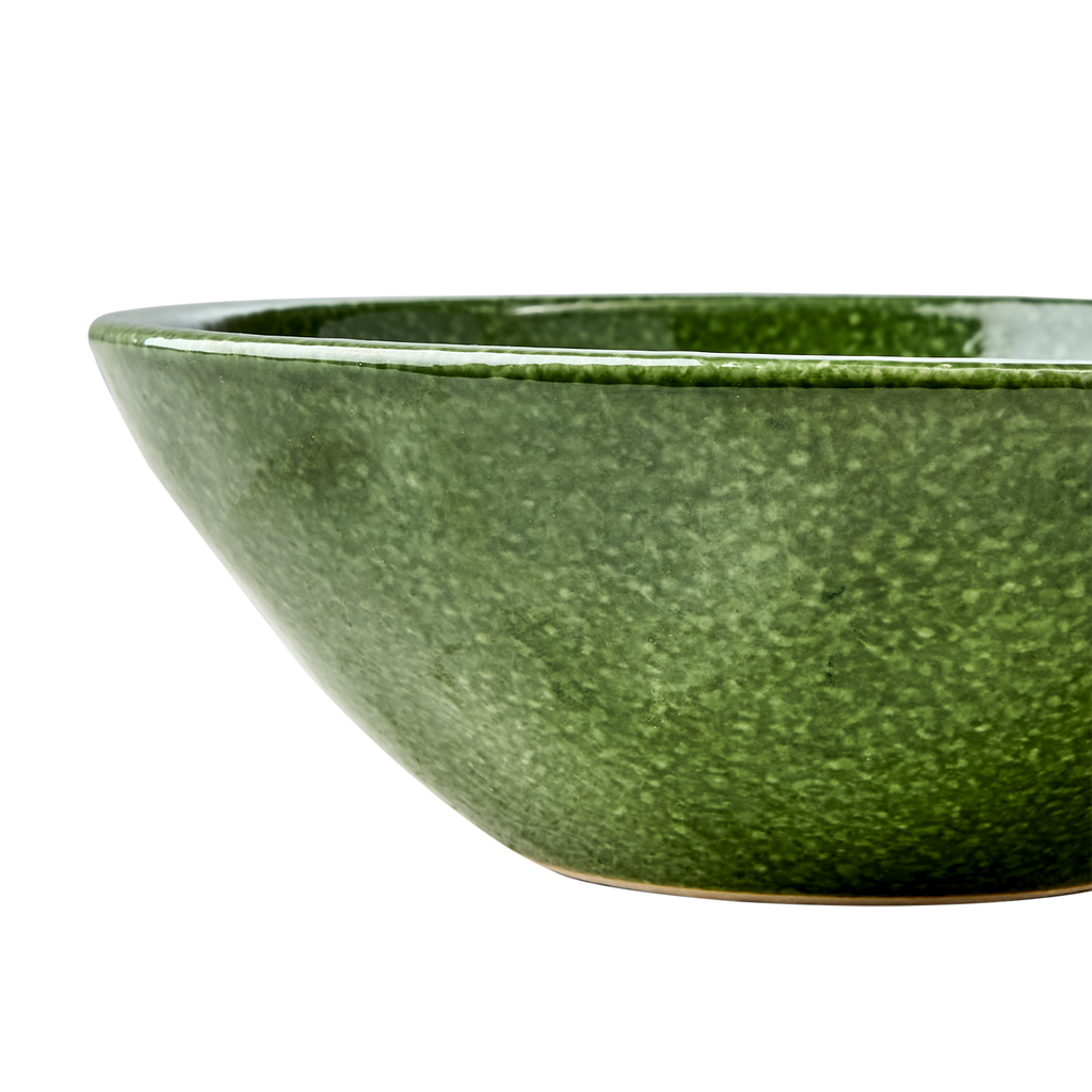 En vacker skål i en härlig grön färg och i ett stengods material som blir en vacker dekoration till middagsbjudningarna.