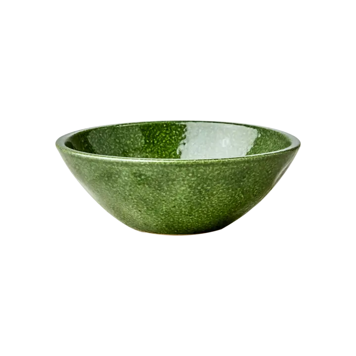 En vacker skål i en härlig grön färg och i ett stengods material som blir en vacker dekoration till middagsbjudningarna. Har en diameter på 15cm och säljs i 2-pack.