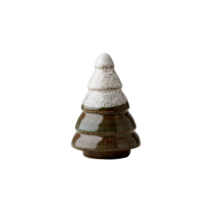 En prydnadsgran i stengods som har en grön/flerfärgad nyans. Har en höjd på 10cm och diameter på 7cm. Nyansen kan variera.