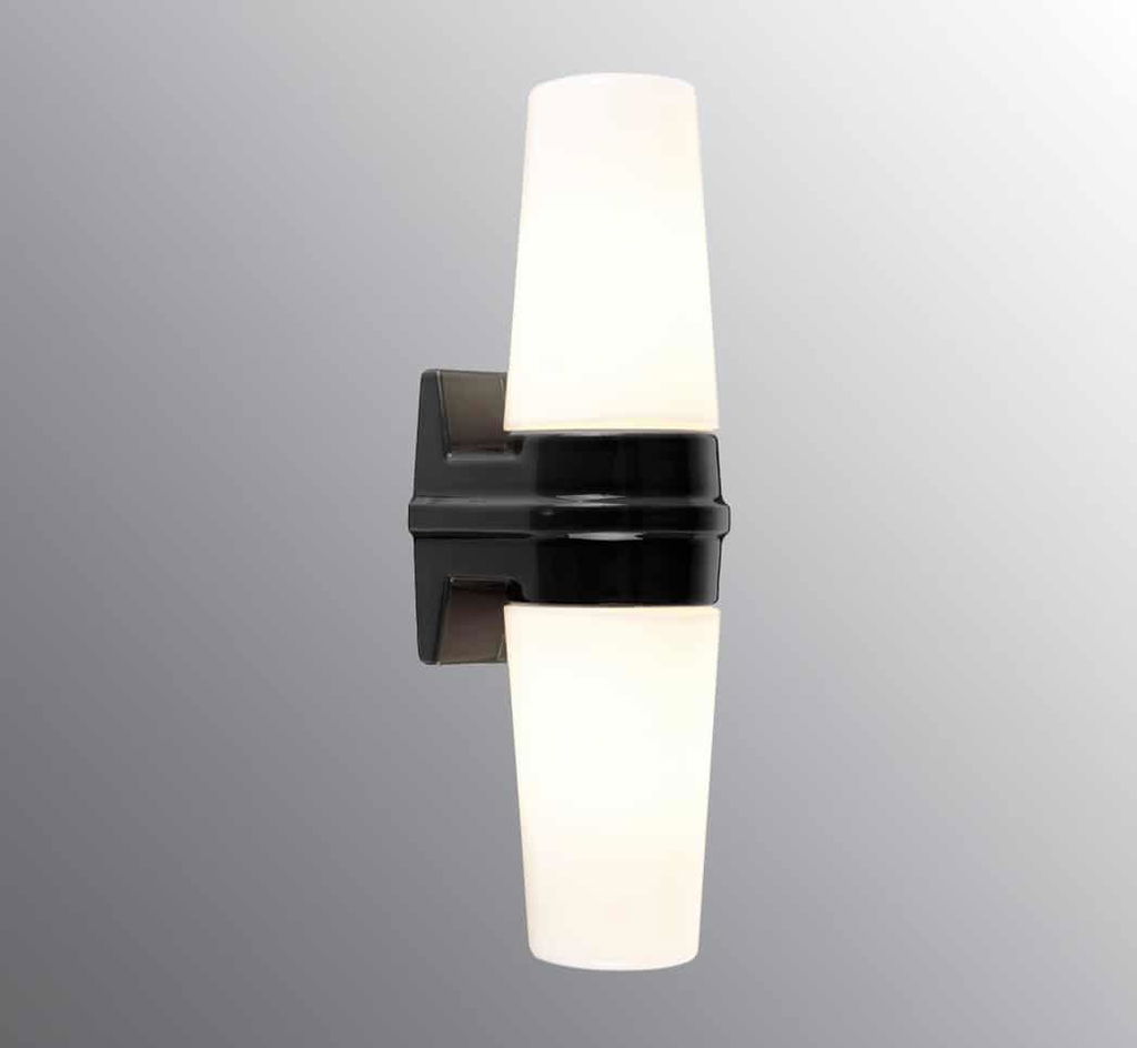 Bernadotte Vägglampa Dubbel IP44 Svart från Ifö electric är en stilren och klassisk badrumslampa med tidlös design som passar de flesta badrum. Bernadotte vägglampa är lika aktuell nu som de var i mitten på sextiotalet då Sigvard Bernadotte designade dem.