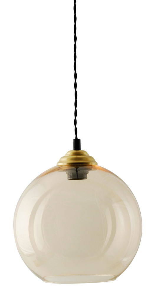 Munblåsta glaskupor i amberfärgat glas. Med bistro kan du skapa ett helt personligt resultat med att matcha med valfritt upphänge och ljuskälla.