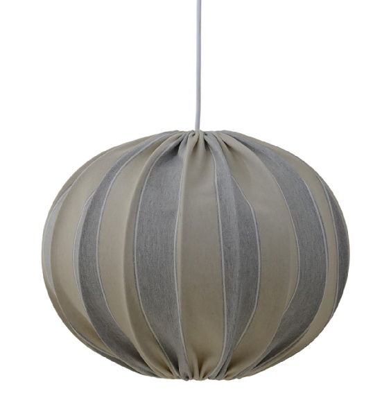 Saint Tropez är tillverkad i ett linnetyg med blåa och sandfärgade ränder. Välj mellan två olika storlekar, samtliga har ett E27-ringfäste.
