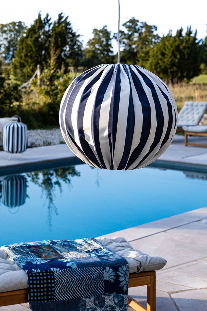 Capri Taklampa 45 Blå/Vit från svensktillverkade Alde & Lind är en elegant taklampa för dina utomhusmiljöer!
