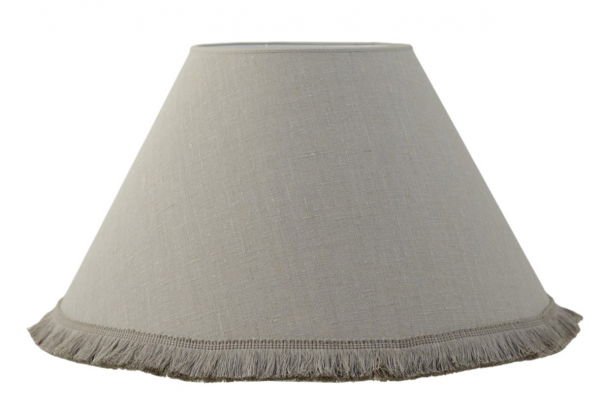 En stilren och klassisk konformad lampskärm i naturfärgat linnetyg med en dekorativ naturfärgad frans. Välj mellan fyra olika storlekar.