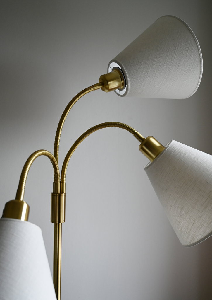 Är tillverkad i linnetyg, med kantband i ovan- och nederkant. Har ett E27 toppringfäste som är anpassad för golvlampor och vägglampor med böjd arm. Välj mellan två olika storlekar.
