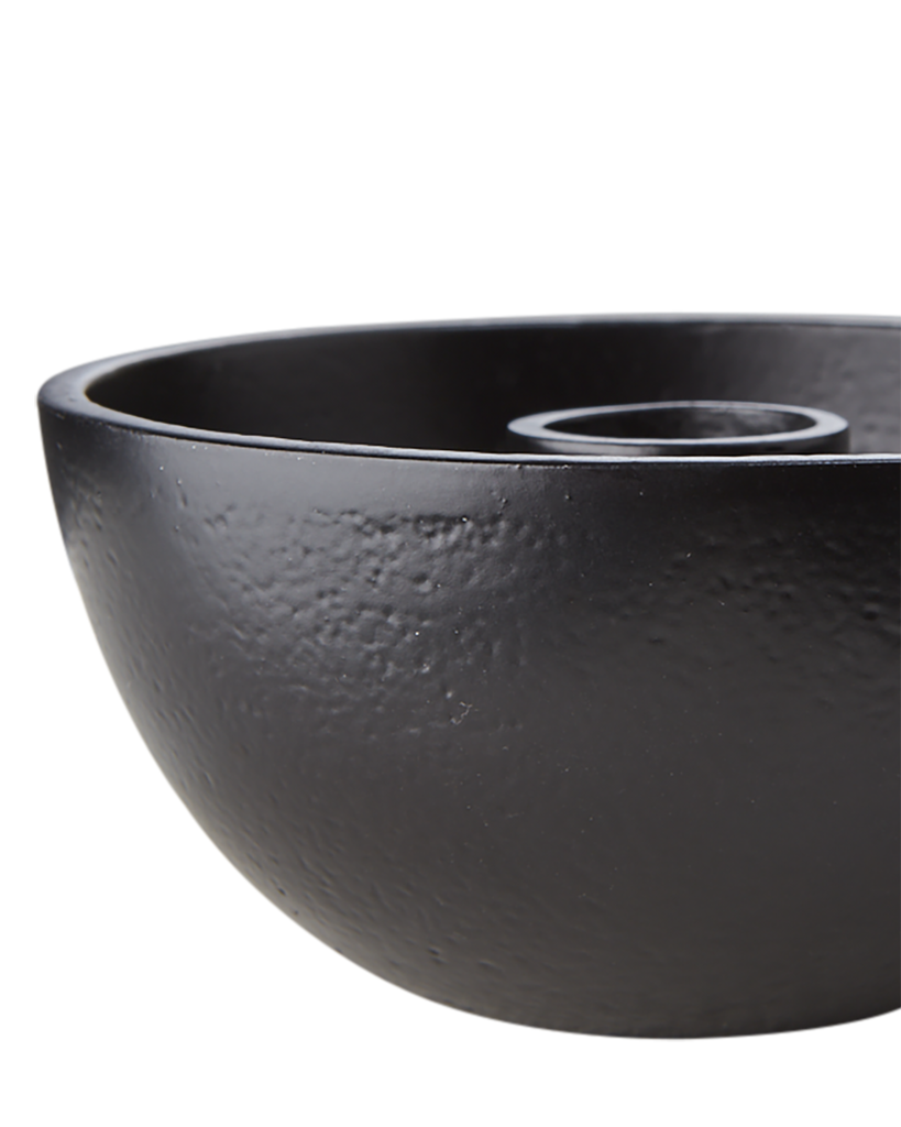 Har en diameter på 10cm och höjd på 5cm. Är tillverkad i svart aluminium.