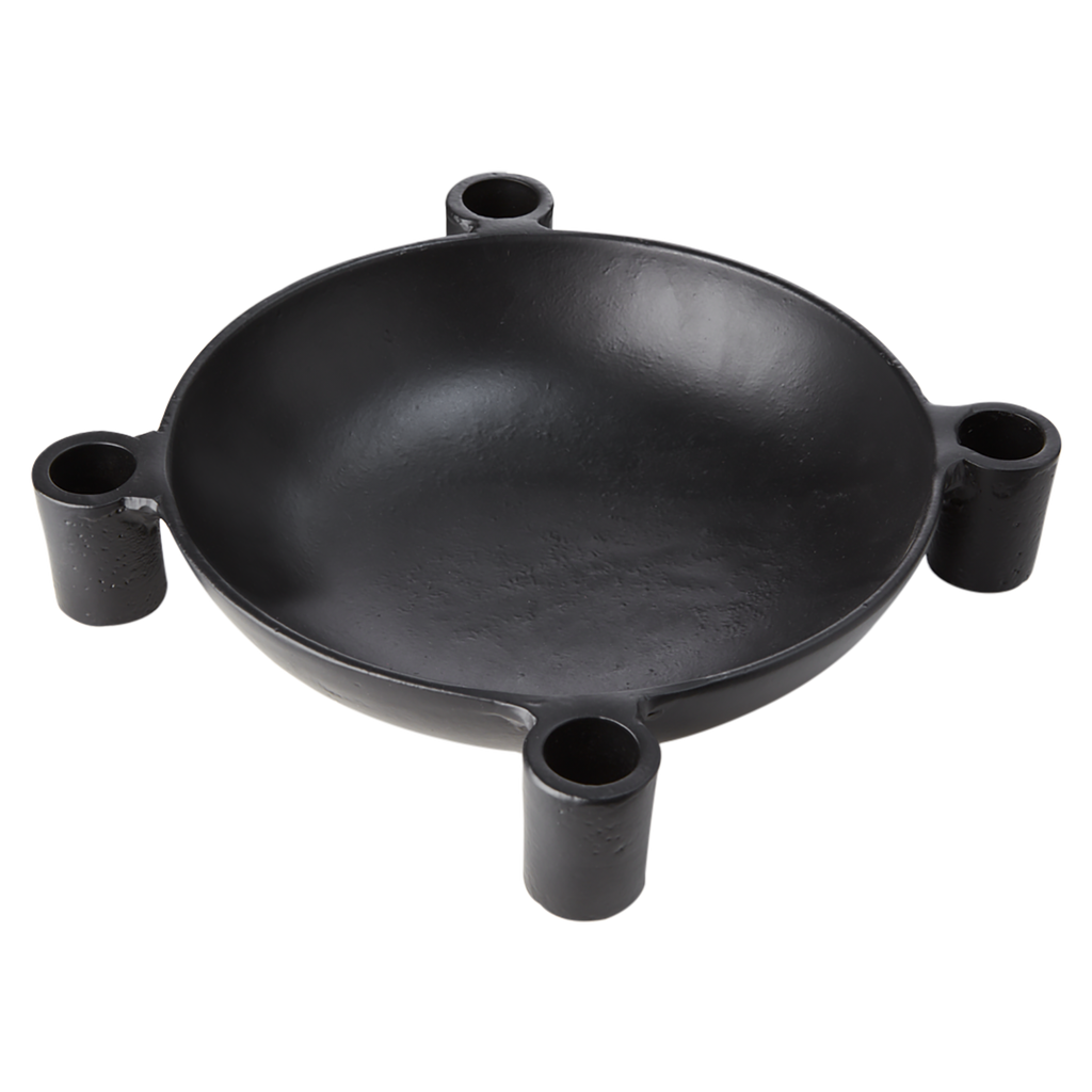 Har en diameter på 27cm och höjd på 5cm. Är tillverkad i svart aluminium.