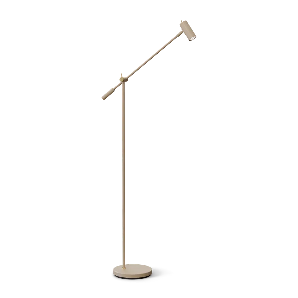 Cato kombinerar minimalistisk skandinavisk design med högkvalitativa material. En klassisk golvlampa i stilren nougat/beige metall med mässingsfärgade detaljer.