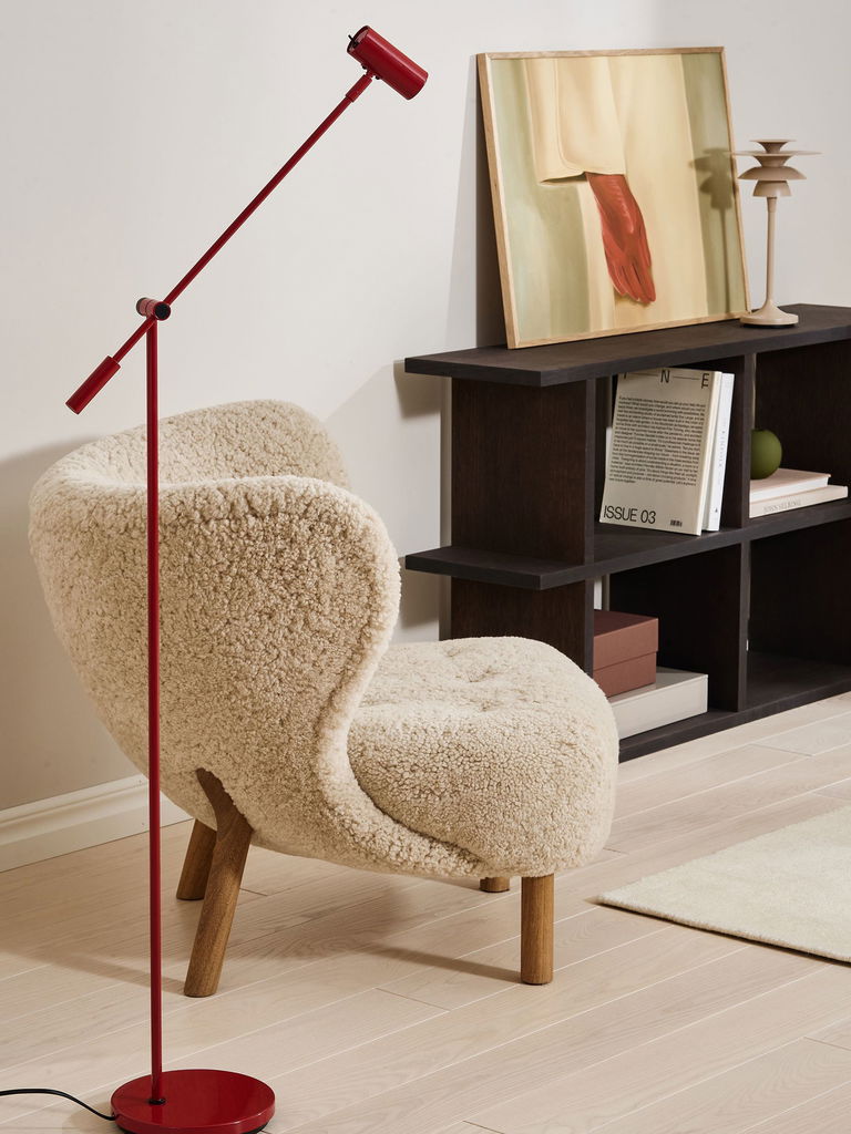 Cato kombinerar minimalistisk skandinavisk design med högkvalitativa material. En klassisk golvlampa i stilren rubinröd metall med mattsvarta detaljer.