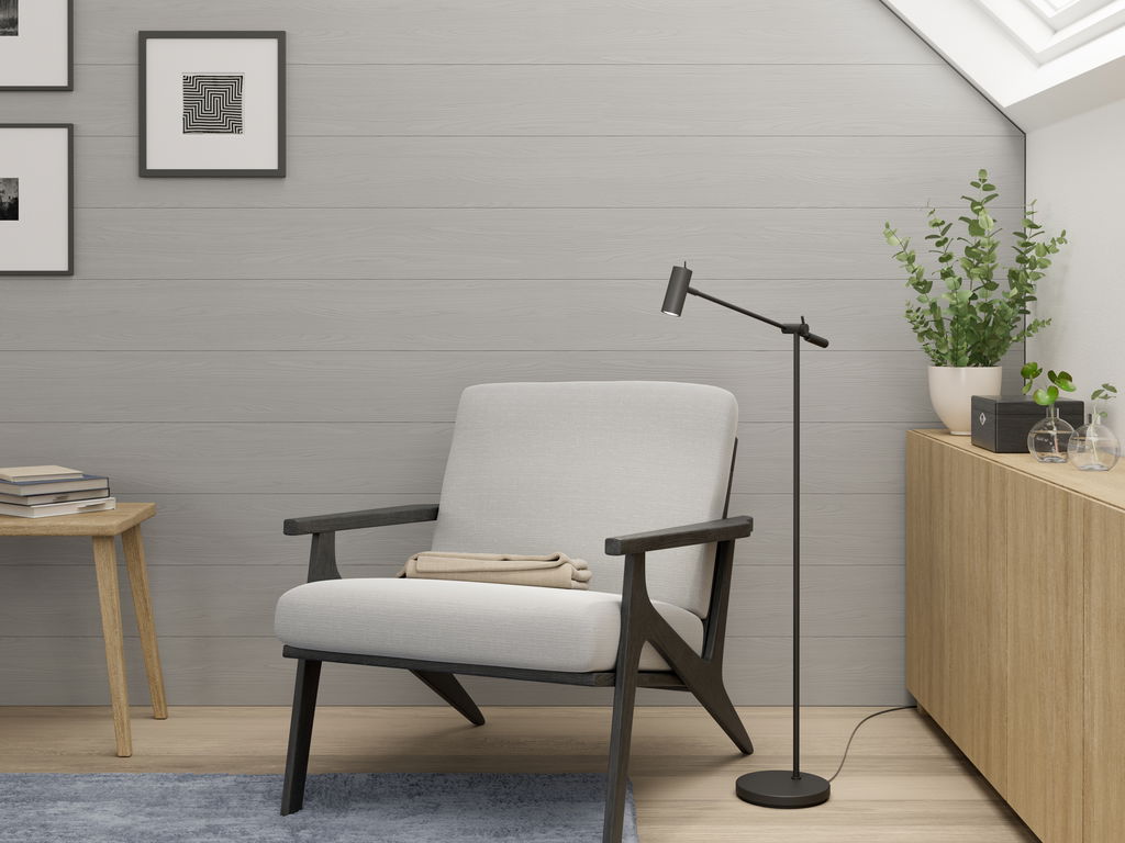 Cato ger ett riktat, centrerat ljus med en justerbar arm och skärm där du kan placera ljuset precis där du behöver det, perfekt för läsbelysning bredvid soffan, vid arbetsytan eller för att sprida en extra allmänbelysning. Är även dimmerkompatibel.