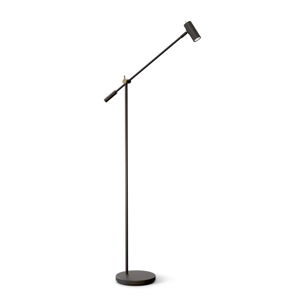 Cato kombinerar minimalistisk skandinavisk design med högkvalitativa material. En klassisk golvlampa i stilren mattsvart metall med mässingsfärgade detaljer.