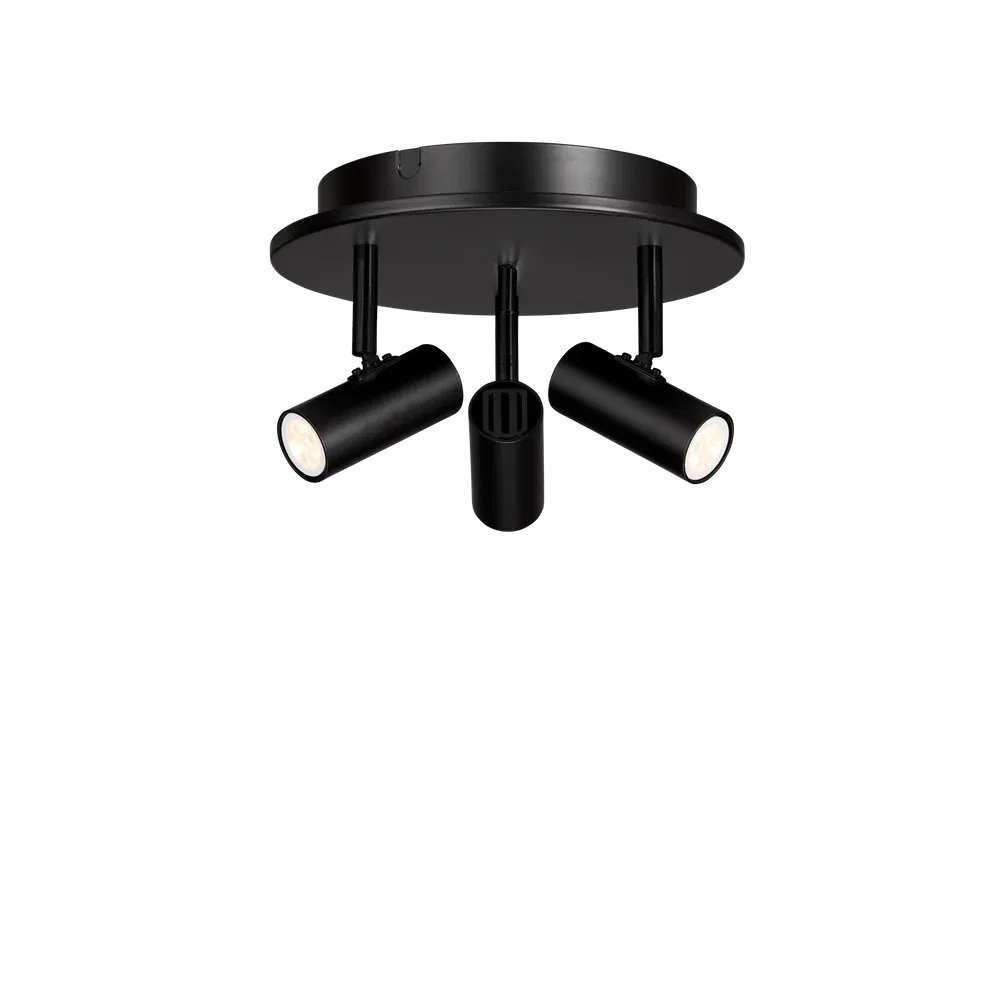 Cato kombinerar minimalistisk skandinavisk design med högkvalitativa material. Detta är en stilren takspot med tre justerbara ljuspunkter i en mattsvart metall som blir en elegant detalj i taket.