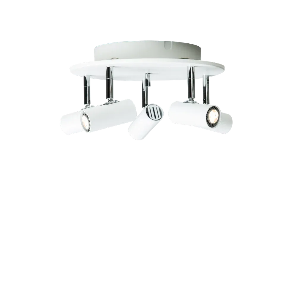 Cato kombinerar minimalistisk skandinavisk design med högkvalitativa material. Detta är en stilren takspot med fem justerbara ljuspunkter i en mattvit metall som blir en elegant detalj i taket.