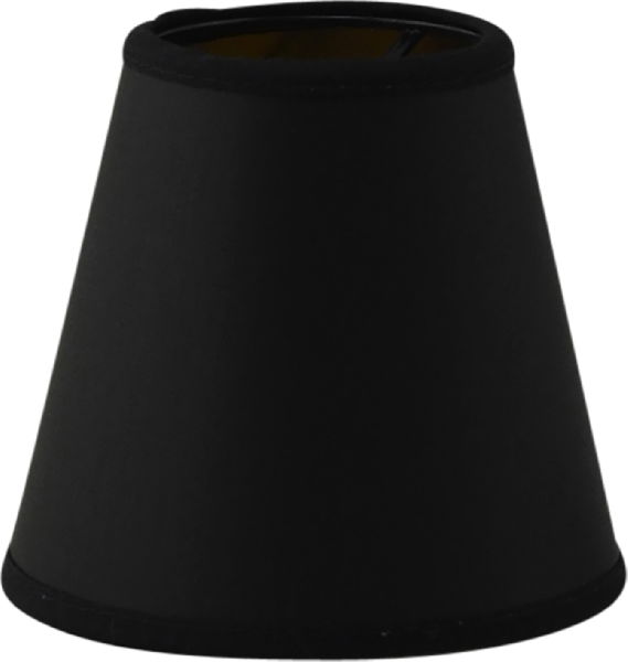 En liten lampettskärm som har ett svart chintz tyg på utsidan med en guldig insida. Gör sig fin på mindre bordslampor, vägglampor eller på ljuskronor.