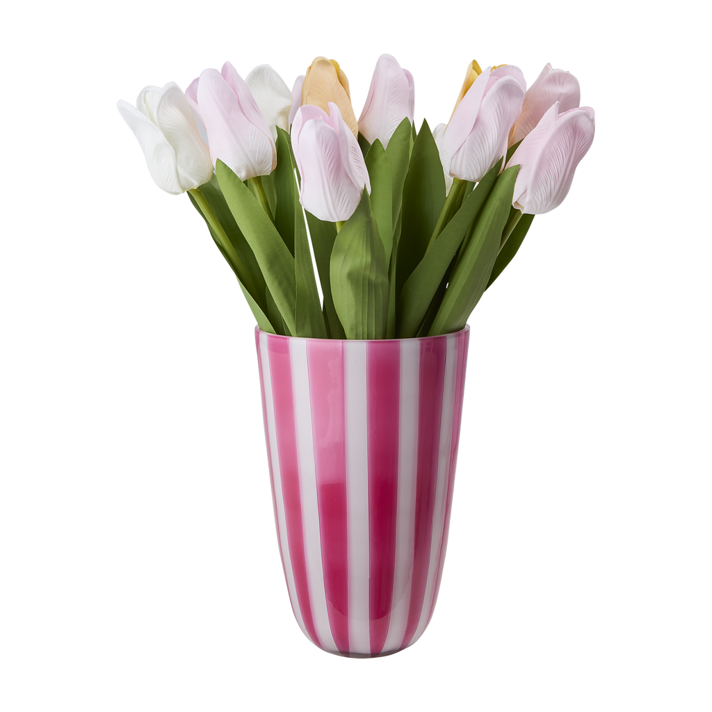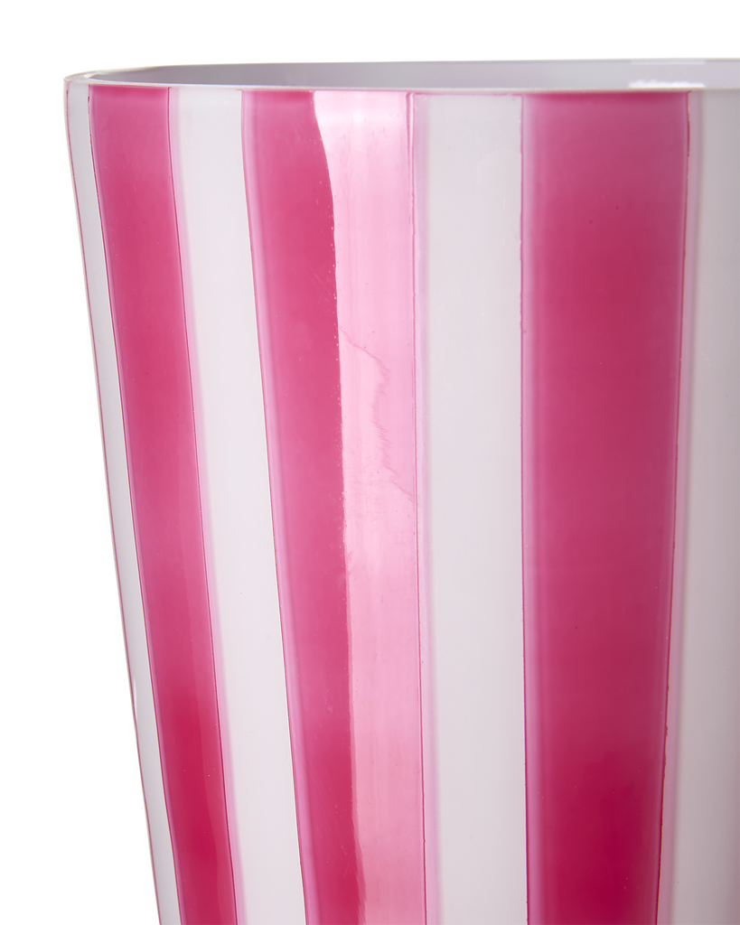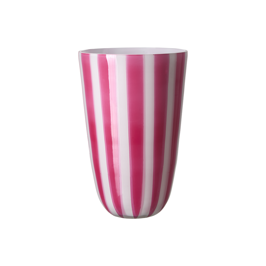 En utstickande vas i glas som har rosa/vita ränder. Circus blir en uppfriskande inredningsdetalj som gör sig fin i alla miljöer.