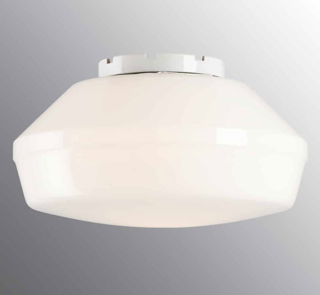 Classic har en keramisk sockel och en blank opal kupa. Monteras på tak. Kan placeras inom- som utomhus.