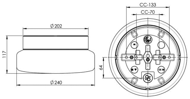 Classic har en keramisk sockel och en blank opal kupa. Kan placeras i tak eller på vägg, såväl inom- som utomhus.