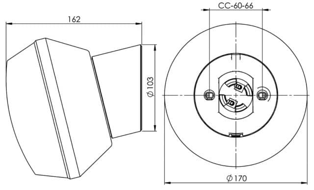Classic har en keramisk sockel och en blank opal kupa. Har en sned formgivning och vinklad 14 grader. Monteras på vägg såväl inom- som utomhus.