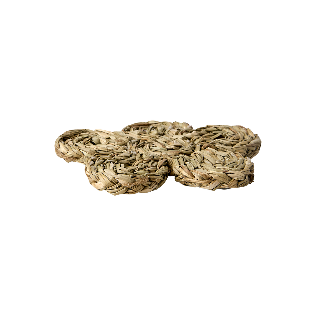 Ett stilrent och funktionellt glasunderlägg tillverkat i sjögräs, format som en blomma. Den naturliga strukturen ger en varm och organisk känsla som passar perfekt i både moderna och klassiska dukningar.
