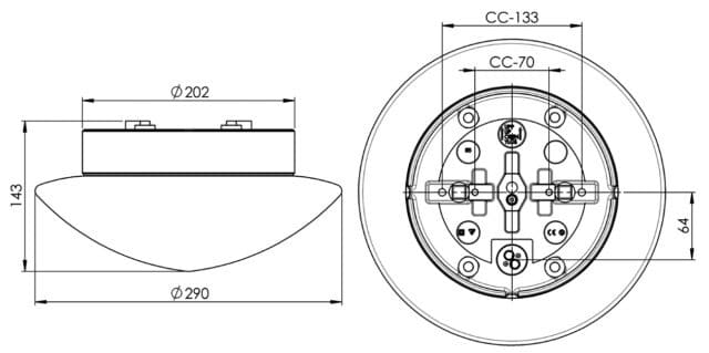 Har en keramisk sockel som är idealisk att använda i bastu då de tål hårda miljöer och har lång hållbarhet. Gör sig lika snygg på väggen som i taket i bastun eller i badrummet.