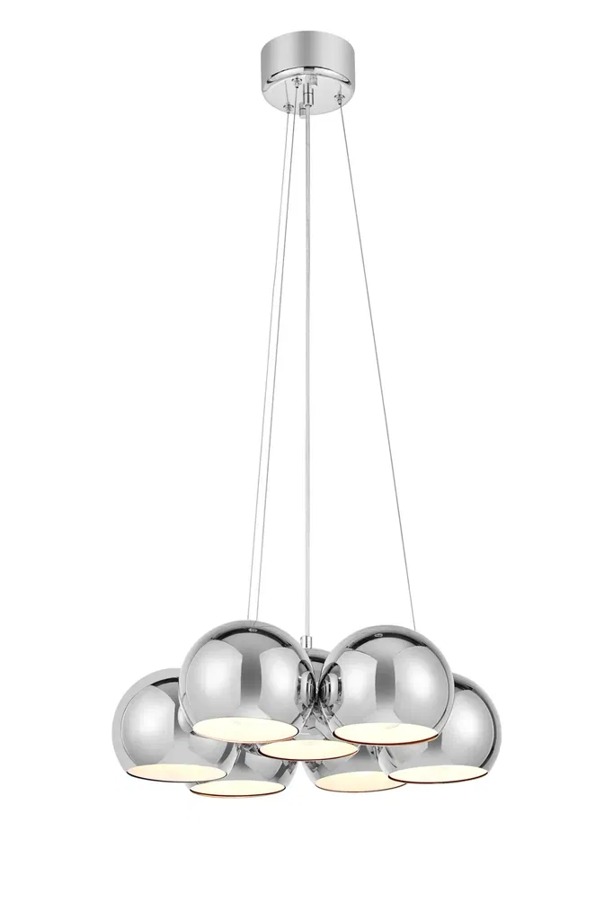 Kommer med en 150cm transparent PVC-sladd och takkopp i krom. Enkel upphängning med takkrok. Kräver 7xE14 ljuskällor max 40W.