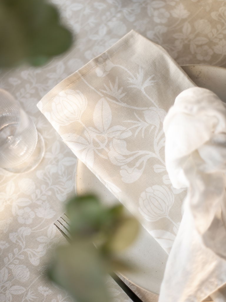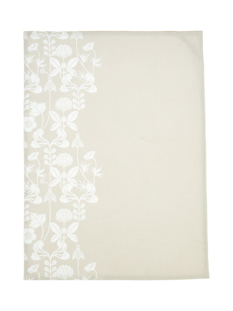 De Mina Kökshandduk 50x70cm Beige från Svanefors. En kökshandduk med tryckt design av Carl Larsson. Storlek 50x70cm med hängare i övre hörnet.