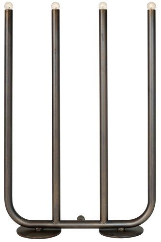 Finstämd och varsam form i oxiderat järn. En adventsljusstake som gör sig lika fin att lysa upp mörkret under juletider som en stilren inredningsdetalj året om.