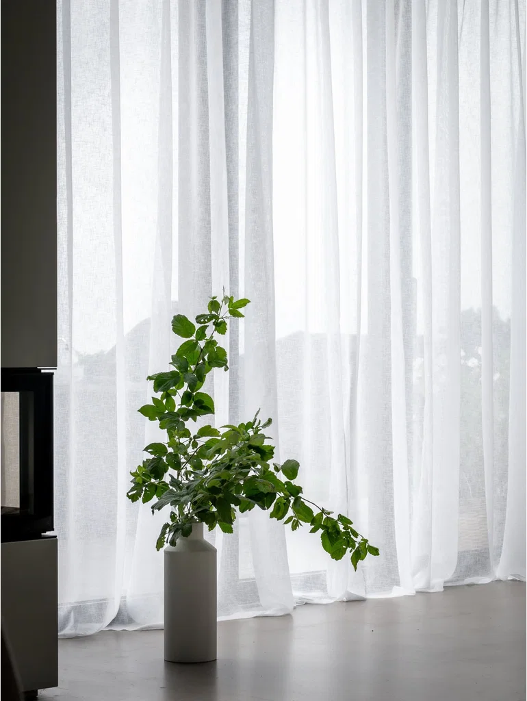Skira gardiner i vit polyester som släpper in ljus på ett mjukt och behagligt sätt. Passar perfekt för en harmonisk känsla i vardagsrum, matsal eller sovrum.