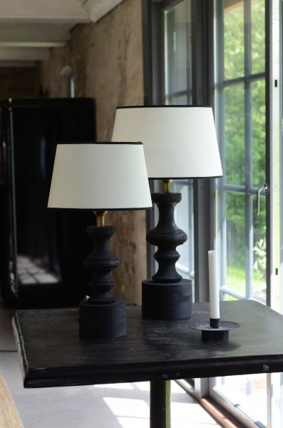 Lampfoten är tillverkad av robust trä, vilket garanterar hållbarhet och stabilitet, kommer i en antik svart finish.