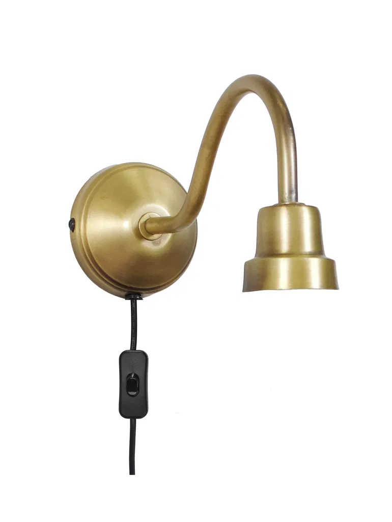 En elegant väggarmatur med en böjd metallram i en fast vinkel i en antik mässingsfinish som ger en vintage känsla. Går att kombineras med en personligt utvald E27-toppringskärm.
