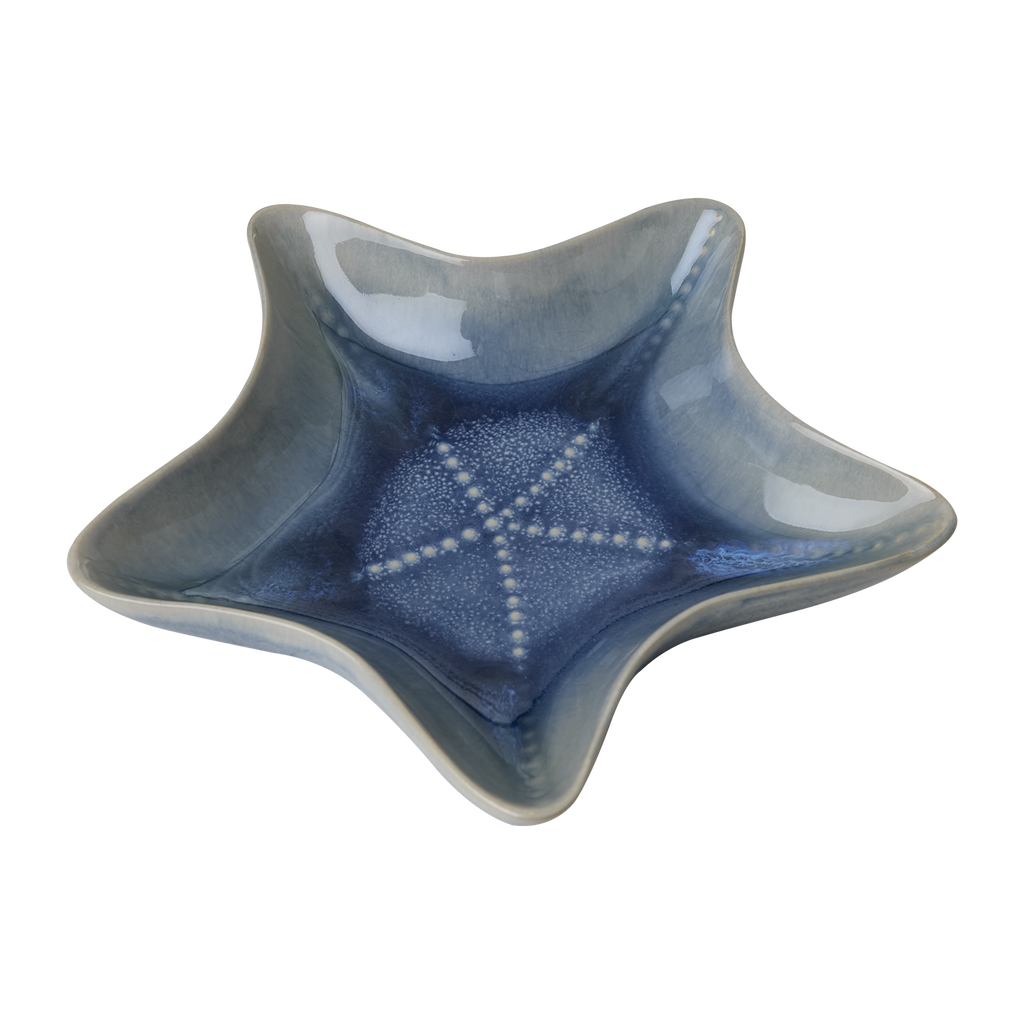Blå skål formad som en sjöstjärna – en unik och stilfull inredningsdetalj som passar perfekt till servering och dekor i hemmet.