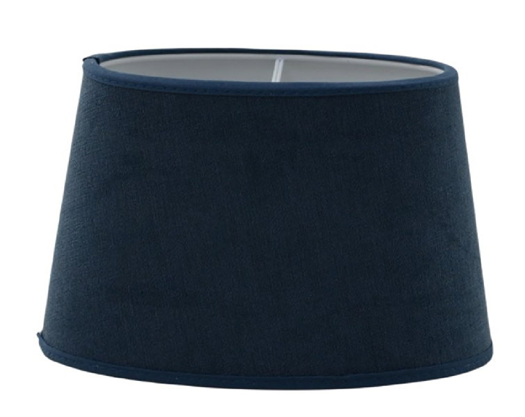 En hemtrevlig skärm som är tillverkad i ett blått polyestertyg med en sammetsfinish – tidlös elegans i fönster och på sidobord. Har en oval formgivning. Välj mellan tre storlekar.