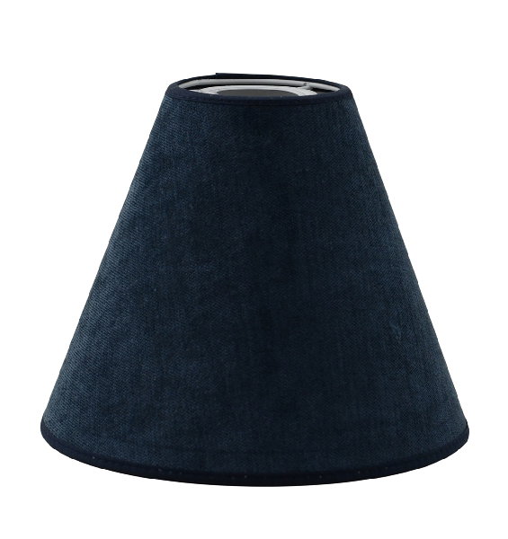 Flow är tillverkad i ett blått polyestertyg med en sammetsfinish. Har ett E27 toppringfäste som är anpassad för golvlampor och vägglampor med böjd arm.