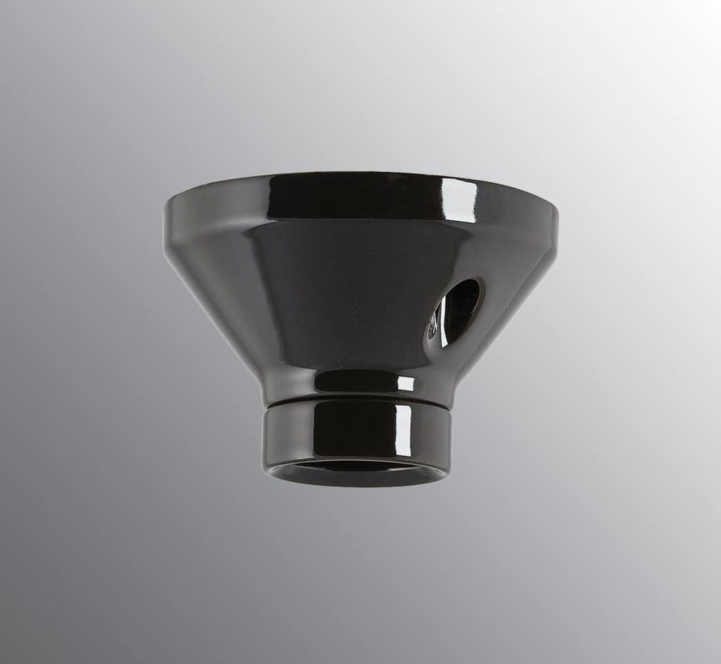 Klassisk fotlamphållare i svart porslin som du lätt kan placera på både vägg och i tak. Har en diameter på 10cm som är anpassad för att täcka en takdosa.