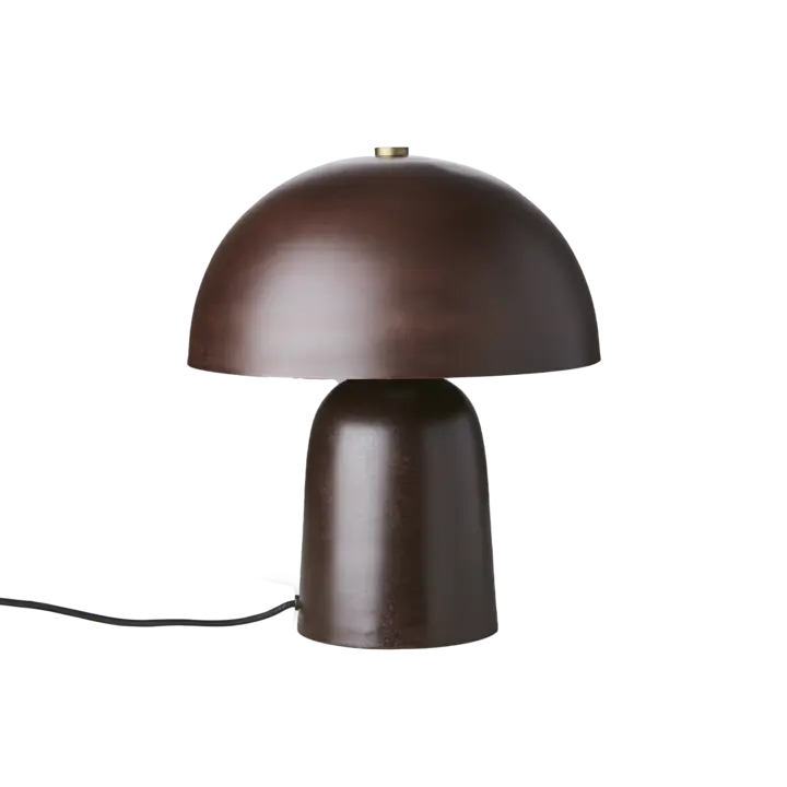 En stilren och trendig bordslampa i brunt järn med en dekorativ mässingsdetalj på lampskärmen. Fungi har den trendiga "svamp" formen som gör sig fin i alla inredningsstilar.