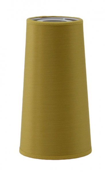 Lampskärmens tyg är designat av Ashley Wilde och har en glansig finish med matchande kantband i samma färg. Har en mer cylindrisk formgivning.