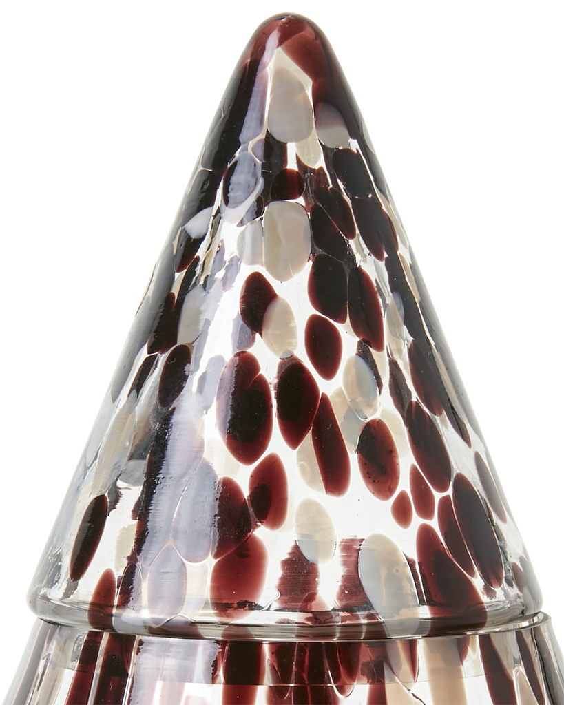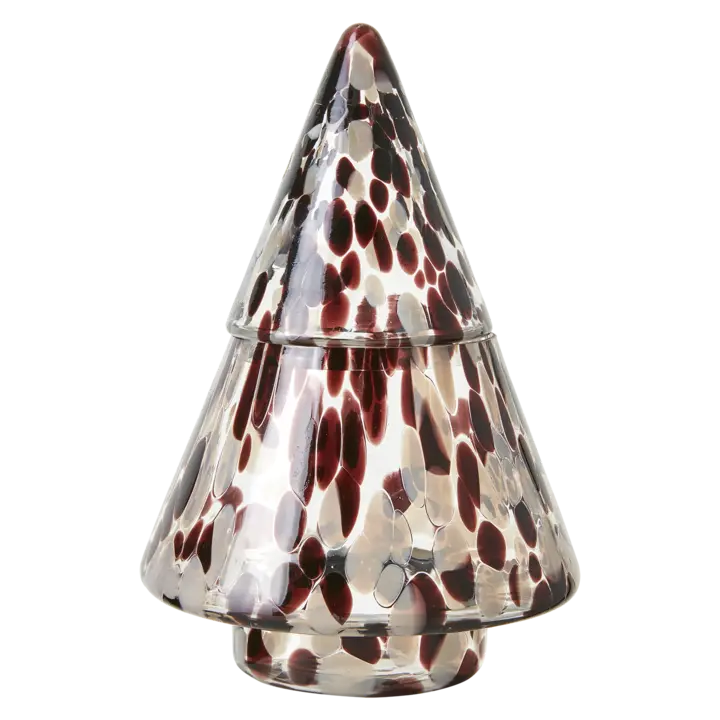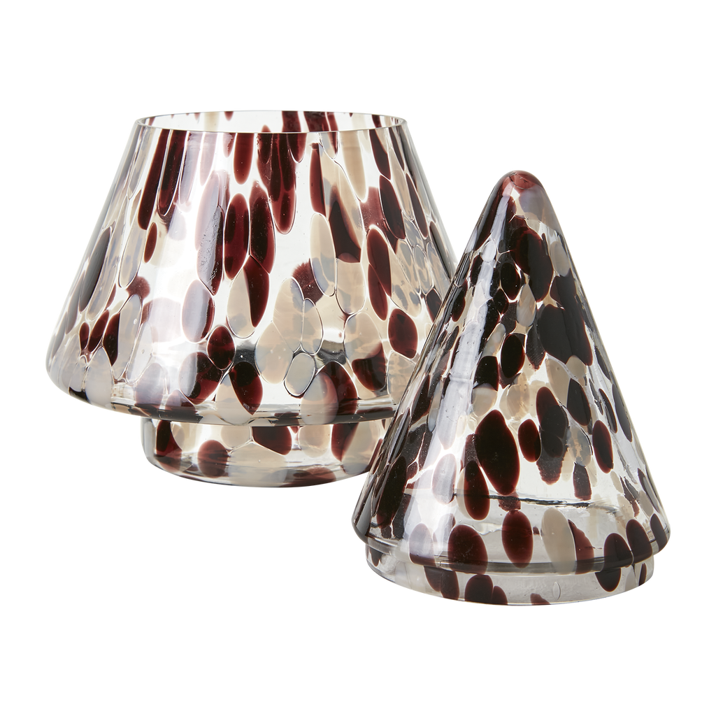 En vacker gran till verkat i munblåst glas i färgerna brun, beige och svart. En perfekt jul- och vinterdekoration, använd den som en skål eller placera en ljusslinga i.