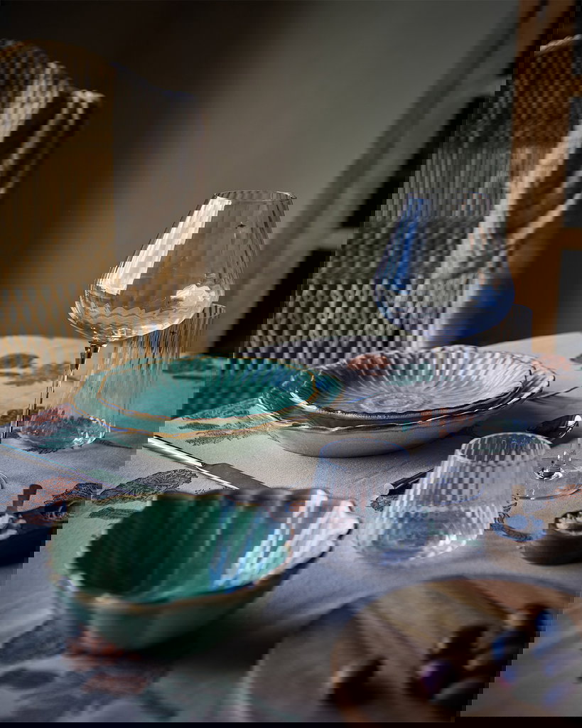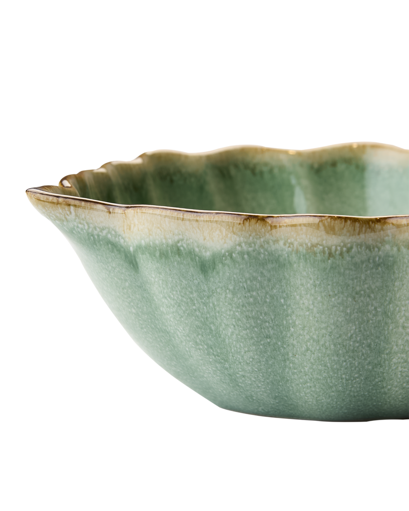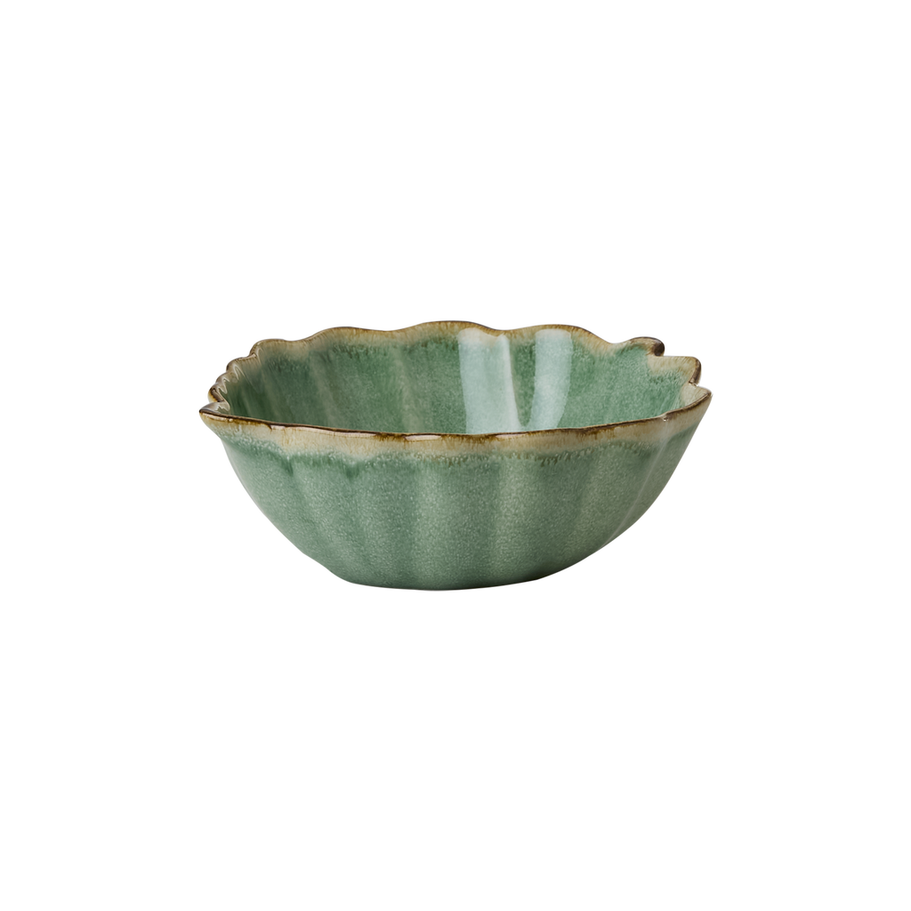 Gröna skålar formade som ett löv med en dekorativ vågig kant ger dukningen en unik och naturinspirerad känsla. Perfekta för både vardag och fest, dessa dekorativa skålar kombinerar funktion med stil och skapar en levande, elegant bordsupplevelse.