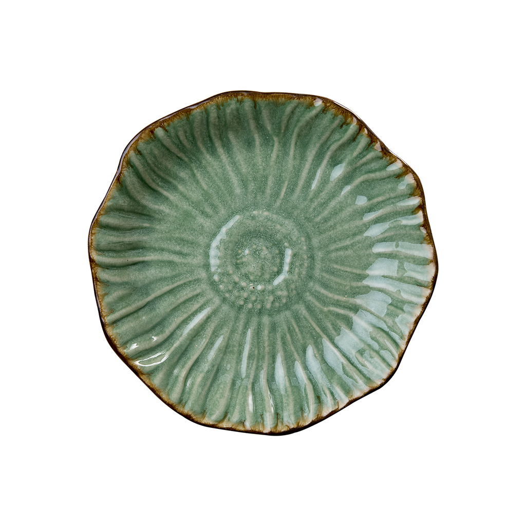 Gröna tallrikar formade som en blomma ger dukningen en unik och naturinspirerad känsla. Perfekta för både vardag och fest, dessa dekorativa tallrikar kombinerar funktion med stil och skapar en levande, elegant bordsupplevelse.