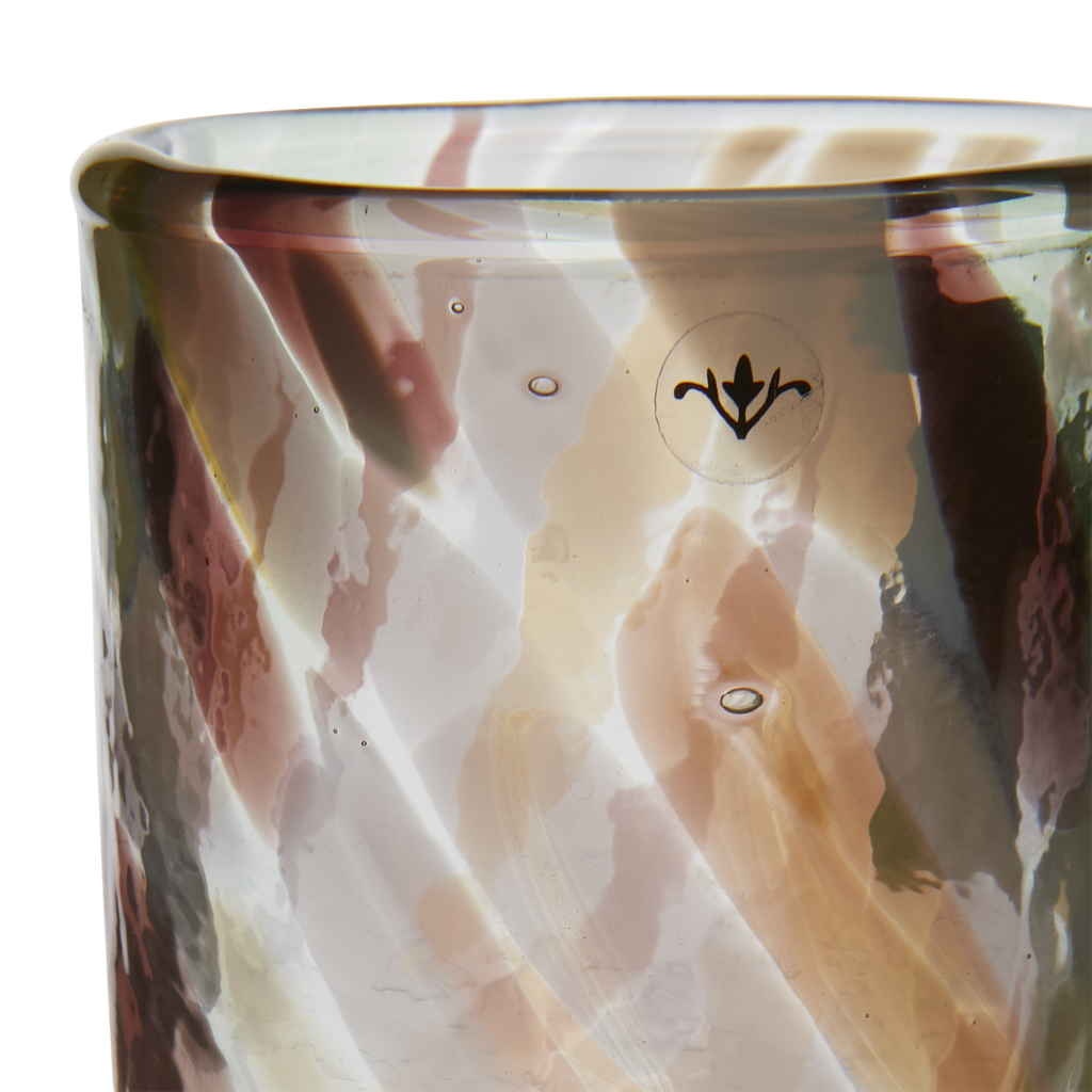 Ett unikt, munblåst dricksglas som kombinerar hantverk och modern design. Varje glas har ett levande uttryck där färgnyanser och små variationer gör varje exemplar personligt.