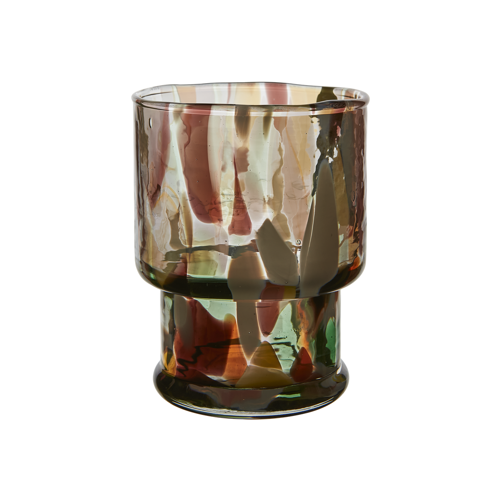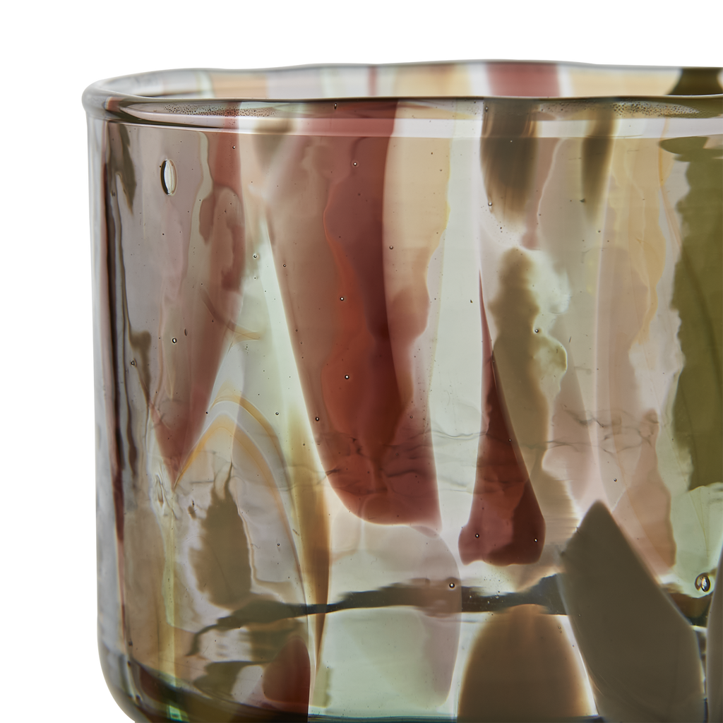 Ett unikt, munblåst dricksglas som kombinerar hantverk och modern design. Varje glas har ett levande uttryck där färgnyanser och små variationer gör varje exemplar personligt.