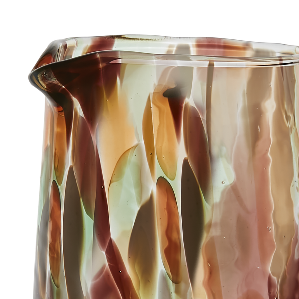 Harold kanna i flerfärgat munblåst glas, är en dekorativ och funktionell serveringskanna med unik karaktär. Den handgjorda designen gör att varje kanna får ett levande uttryck där färgnyanser och små variationer skapar en personlig känsla.