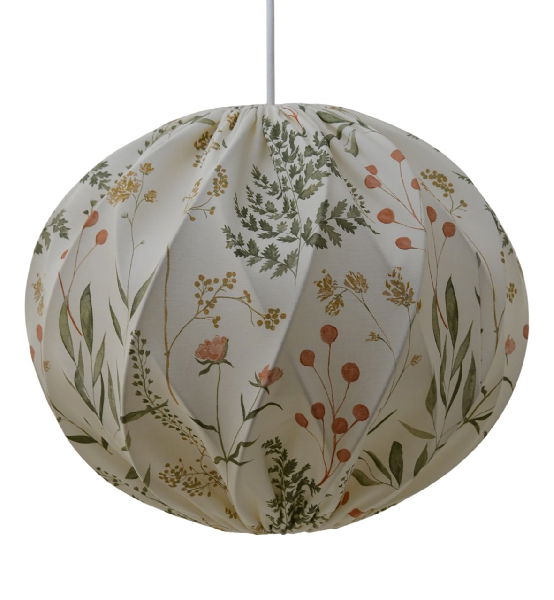 En stilren lampskärm med ett dovt, färgglatt mönster av växter och blommor. Passar perfekt som sovrumslampa då den ger ett hemtrevligt och mjukt intryck, men fungerar även för att mjukna upp ett vardagsrum eller kök!